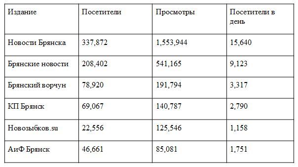 Каждый месяц Ассоциация новостных сайтов представляет рейтинги посещаемости электронных СМИ в регионах. На очереди - рейтинг брянских электронных СМИ за сентябрь.